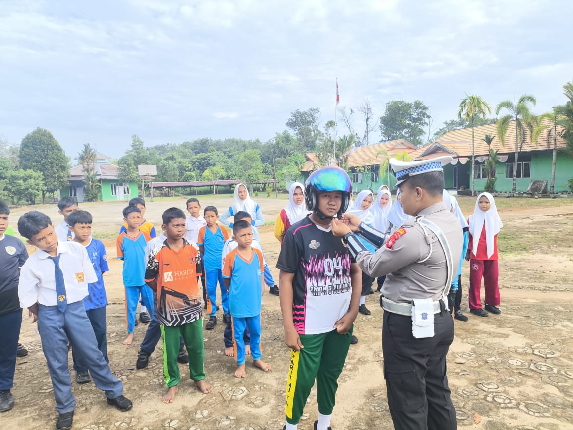 Polres Kayong Utara, Polda Kalbar – Tren penggunaan sepeda listrik di kalangan remaja kian meningkat, namun hal ini juga membawa risiko kecelakaan jika tidak dibarengi dengan pemahaman aturan lalu lintas yang benar. Menanggapi fenomena tersebut, Satuan Lalu Lintas (Satlantas) Polres Kayong Utara melaksanakan kegiatan Police Goes To School (PGTS) di SMP Negeri 03 Sukadana, Selasa (06/01/2026).