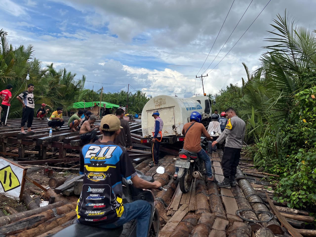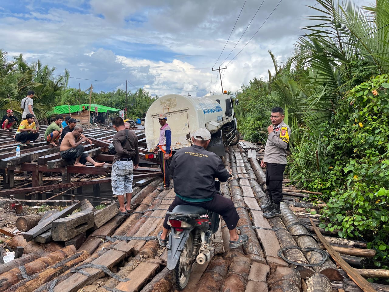 Polres Kayong Utara, Polda Kalbar – Personel Polsek Simpang Hilir, jajaran Polres Kayong Utara, melakukan aksi sigap dalam pengamanan jalur mudik dan distribusi logistik menjelang Natal dan Tahun Baru. Pada Sabtu (20/12/2025) siang, petugas melakukan evakuasi dan pengaturan lalu lintas di lokasi perbaikan jembatan yang sempat lumpuh akibat satu unit truk pengangkut oksigen terperosok.