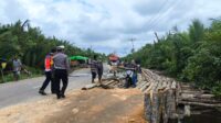 Polres Kayong Utara, Polda Kalbar — Sebuah kendaraan mengalami kerusakan parah akibat engsel roda ban yang putus ketika melintasi jalan poros Melano – Jembatan Rantau Panjang (Sukadana) – Jembatan Sei Jambu (Simpang Hilir) yang mengalami kerusakan berat dan berlubang, pada Selasa 25/11/2025.