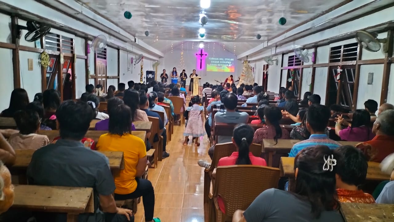 Ibadah Perayaan Natal dipimpin oleh Pdt. Daniel Palino, S.Th, M.Pd, dengan mengusung tema “Yesus Datang Untuk Menyelamatkan Umat-Nya”. Jumlah jemaat yang hadir tercatat sekitar 200 orang, yang mengikuti rangkaian ibadah dengan penuh kekhusyukan.