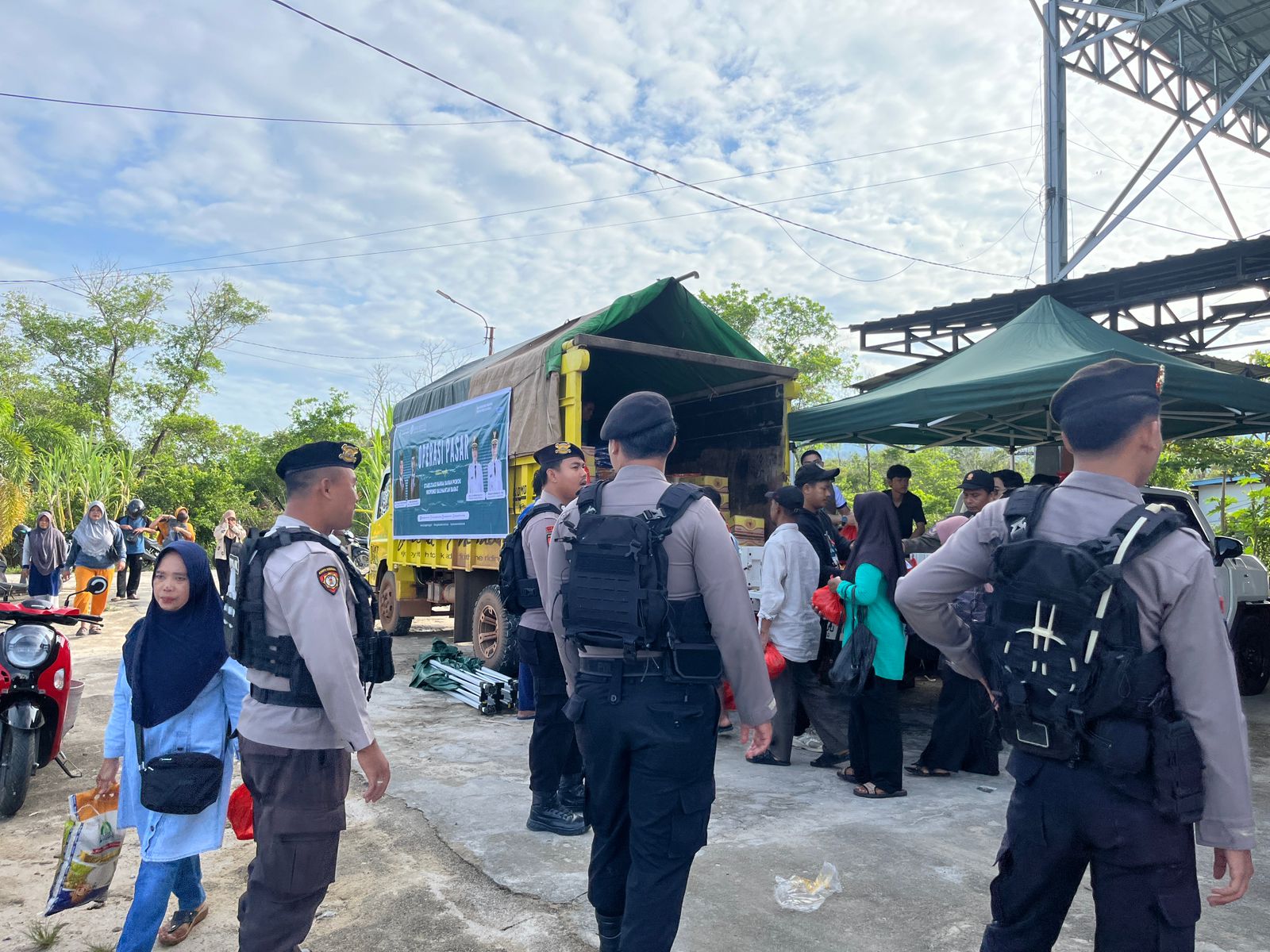 Pengamanan Polres Kayong Utara Mendukung Kelancaran Kegiatan berlangsung lancar, aman, dan kondusif hingga selesai pukul 08.30 WIB. Personel Polres Kayong Utara turun langsung mengatur antrean, menjaga keamanan, serta memastikan distribusi sembako tepat sasaran.
