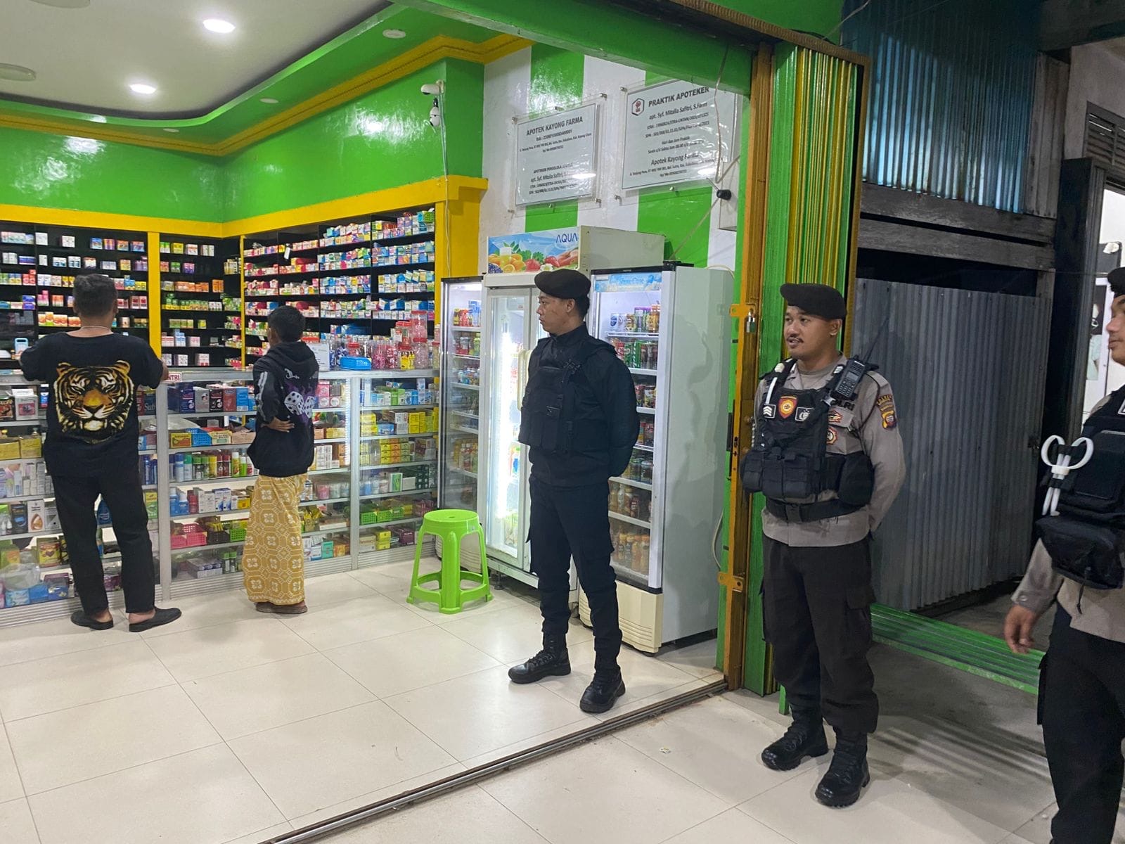 Dalam pelaksanaannya, petugas menyambangi sejumlah lokasi yang menjadi sasaran patroli seperti toko apotek, Bank Kalbar, Bank BRI, dan toko emas, guna melakukan pemantauan situasi keamanan serta memberikan rasa aman kepada masyarakat dan pelaku usaha.